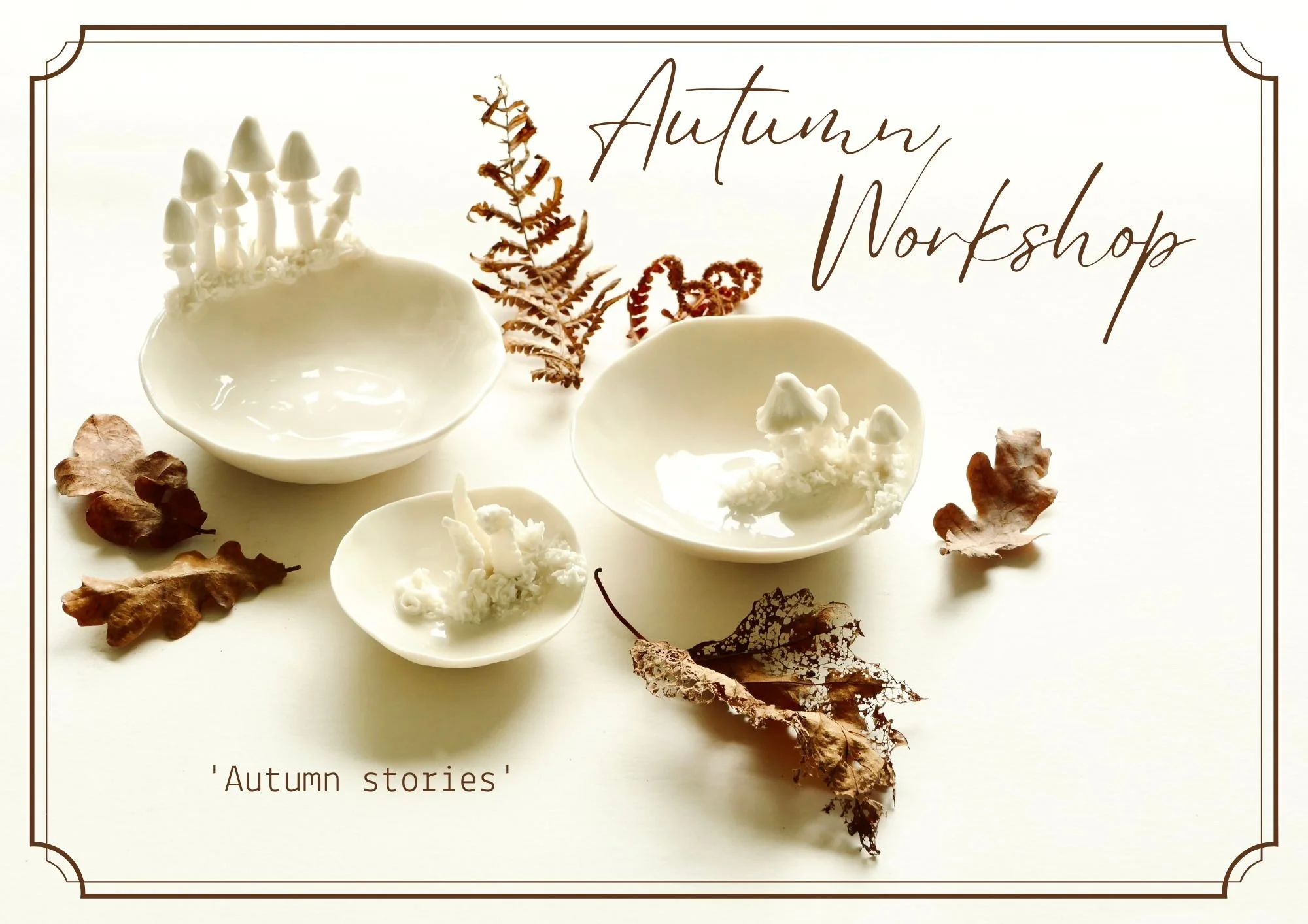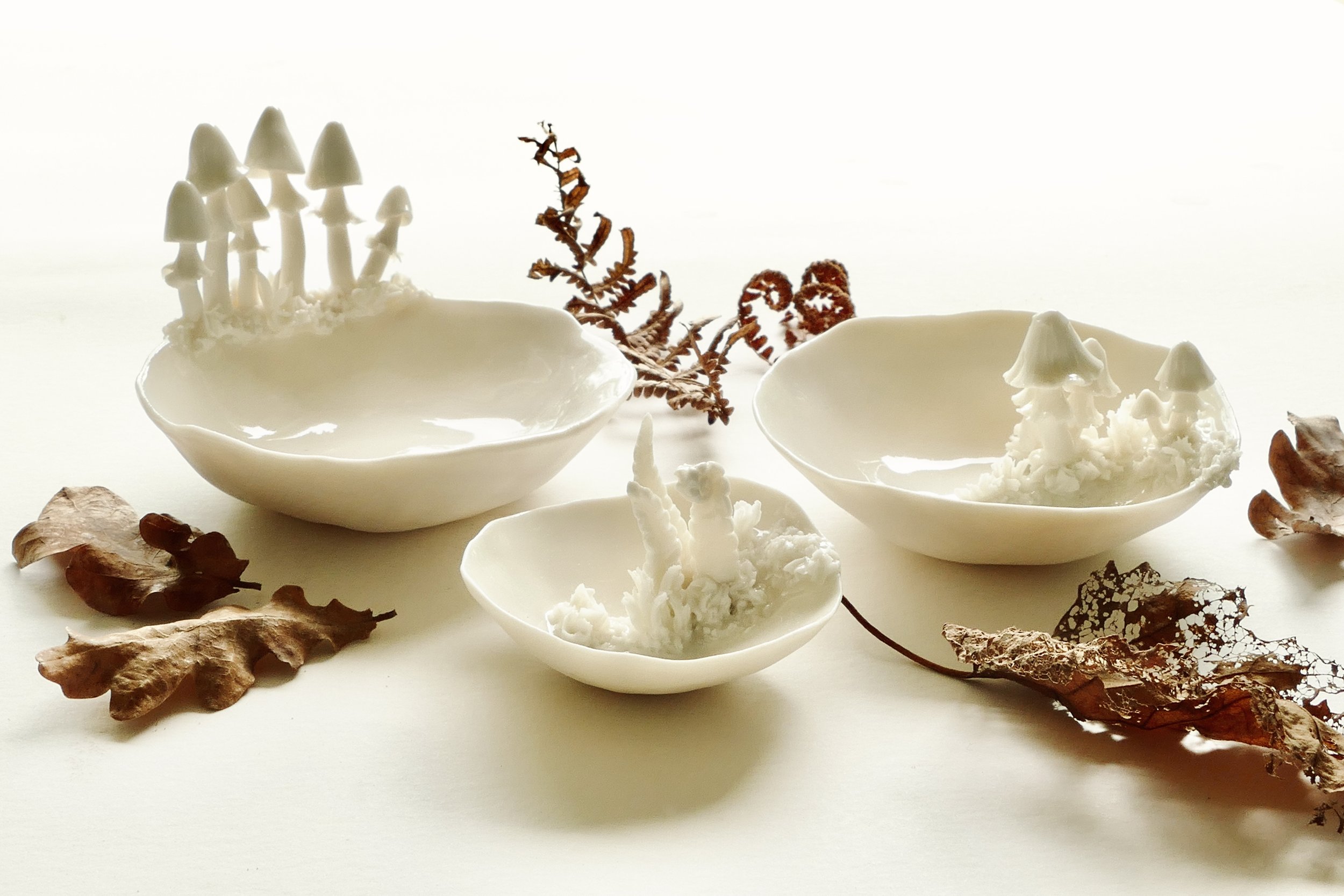 During this workshop, for beginners as well as advanced, you will learn how to create porcelain dishes and bowls in different sizes. I'll teach you how to decorate them with autumnal details such as leaves, mushrooms and moss.