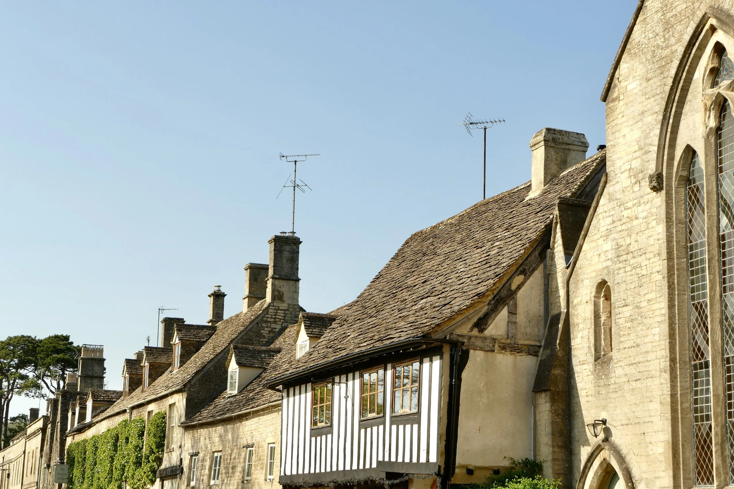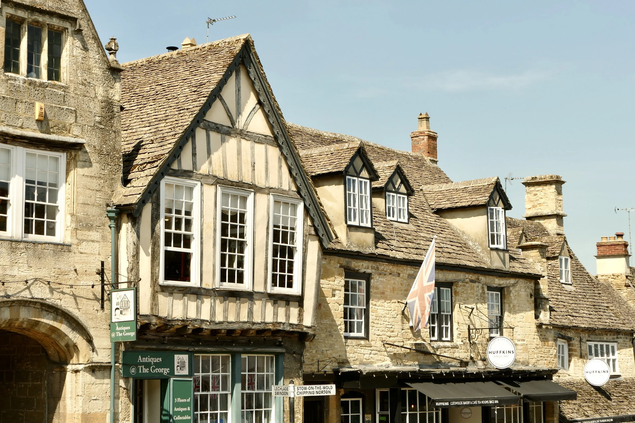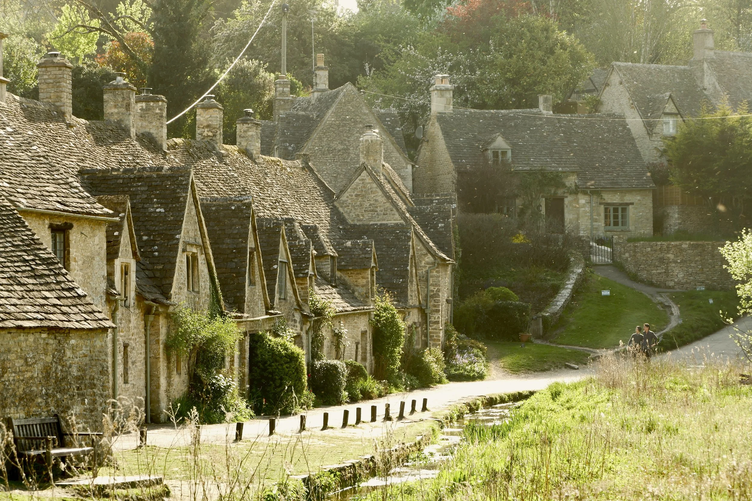The distinctive honey-coloured stone used in buildings across in the Cotswolds is limestone and gives these villages their unique and warm character.