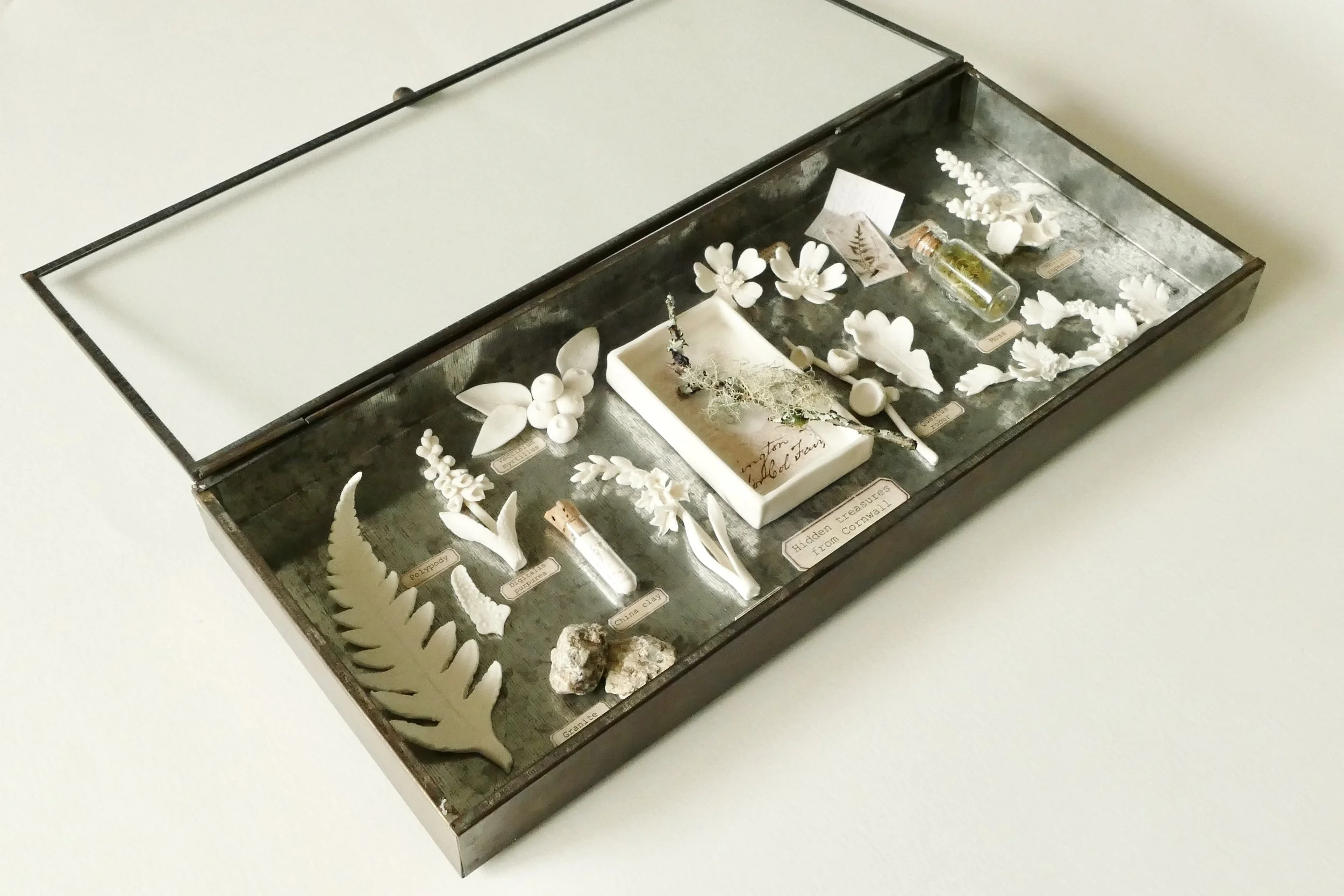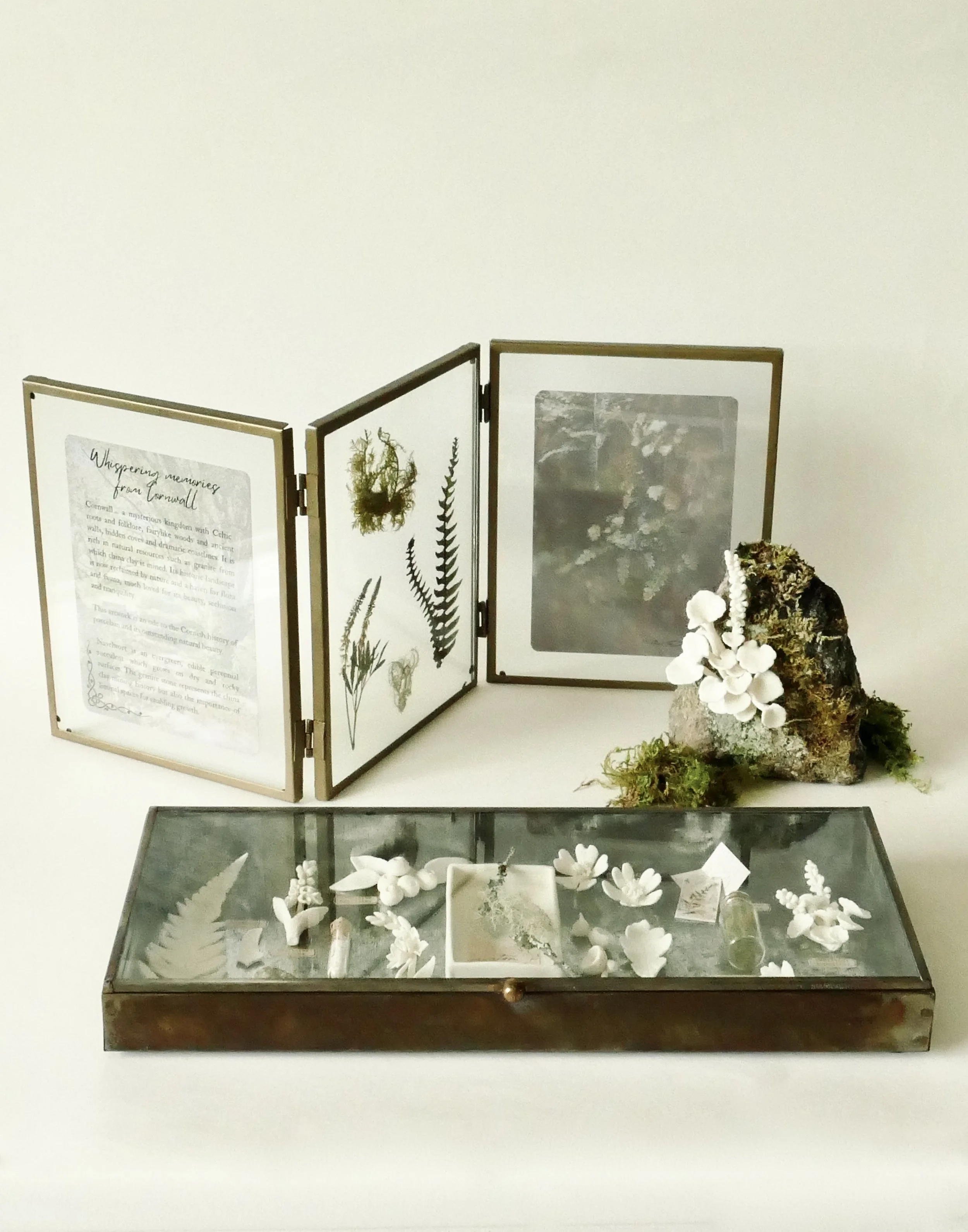 This second artwork in an antique metal glass box is an ode to the Cornish history of porcelain and its outstanding natural beauty.