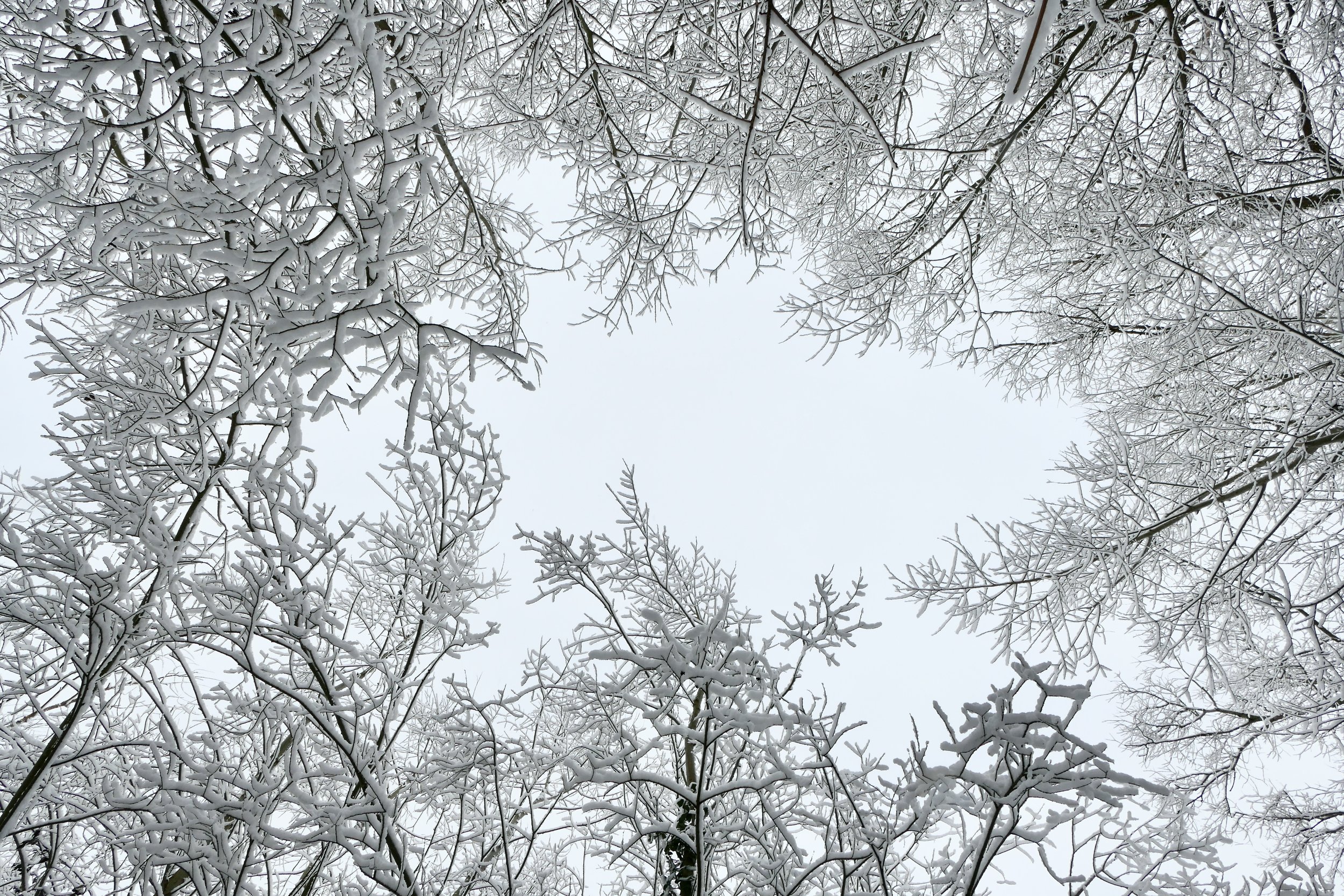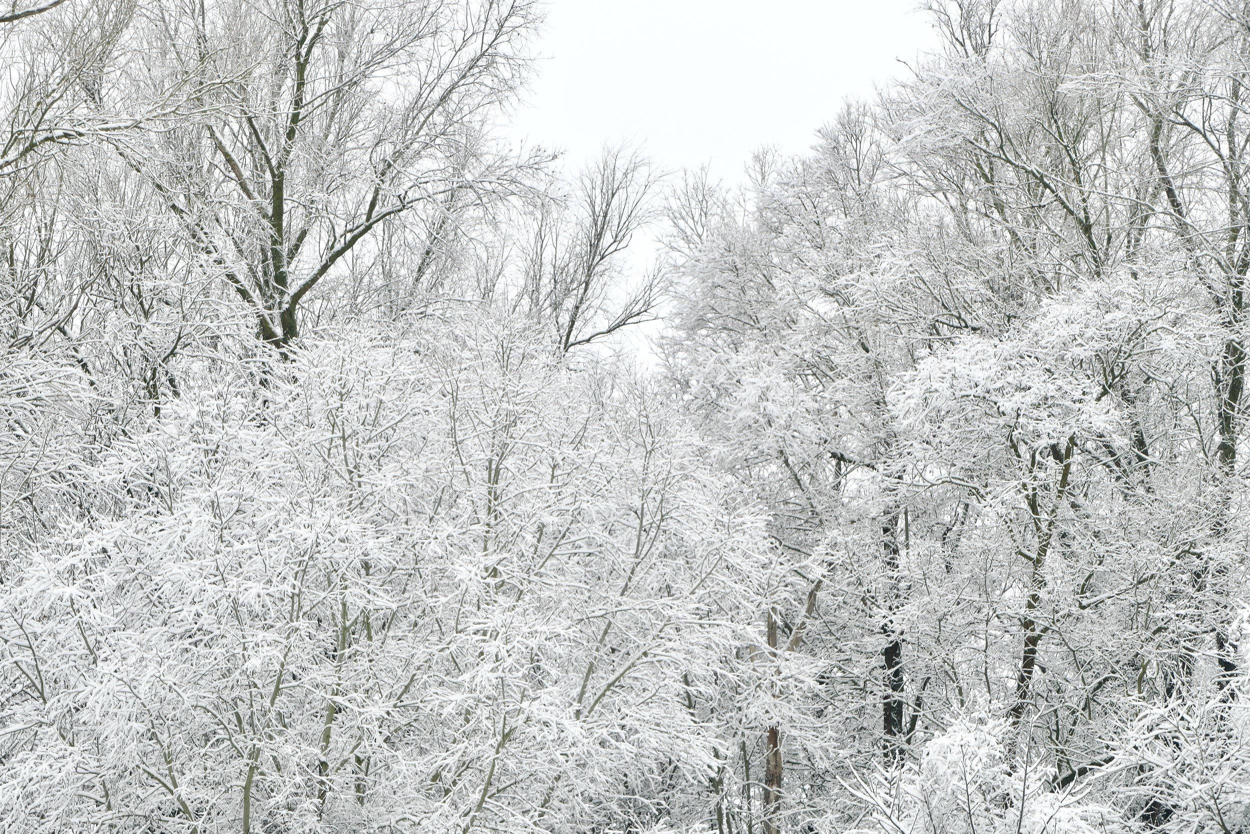 The bare structures of the trees clearly visible against a backdrop of white. They make the most perfect sketches in black and white.